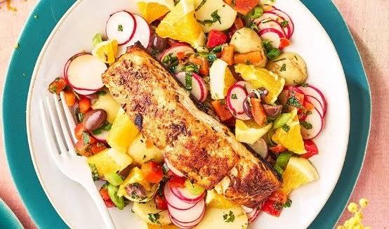 سلطة السلمون المشوي والبطاطس.. خيار صحي بمذاق شهي ومغذي