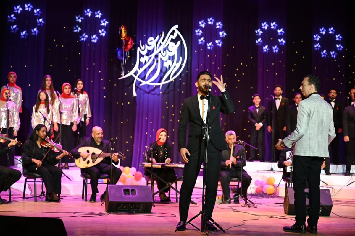 استهل الحفل بعرض فني راقٍ لفرقة الأنفوشي للموسيقى العربية بقيادة المايسترو هيثم مدحت بسيوني، حيث قدمت الفرقة باقة متنوعة من الأغنيات الطربية التي تفاعل معها الحضور، منها "يا ليلة العيد، يا بنات بحري، ضحك ولعب وجد وحب، من حبي فيك يا جاري، يا سلام سلم، إن راح منك يا عين، عشان نبينا، بحلقلي وبصلي، عيون بهية، يا بياعين العنب، إنت عمري، أمانة عليك، يا صلاة الزين، ميدلي فلكلور".