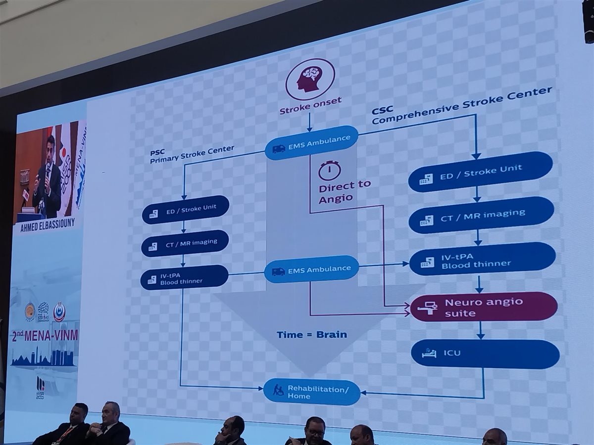 وأضاف أن مصر تسجل سنويًا نحو 300 ألف حالة سكتة دماغية، فيما تحتاج المنظومة الصحية إلى إجراء ما لا يقل عن 60 ألف قسطرة مخية علاجية سنويًا، مؤكدًا أهمية المؤتمر في دعم قدرات الأطباء المصريين والتعاون العلمي مع كبرى المراكز العالمية.