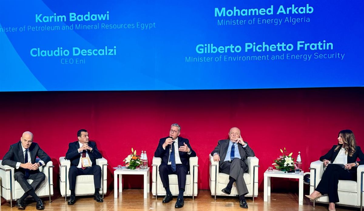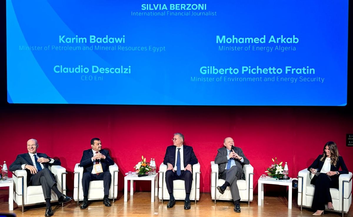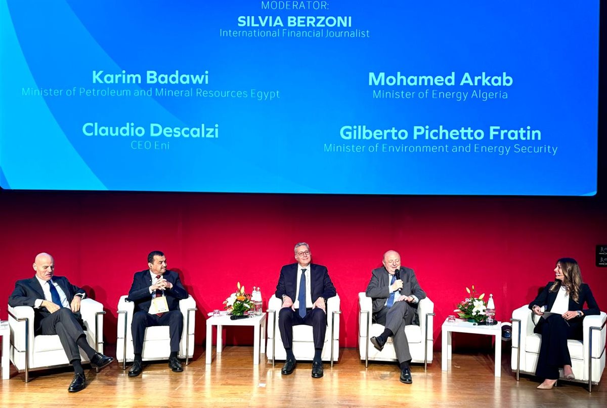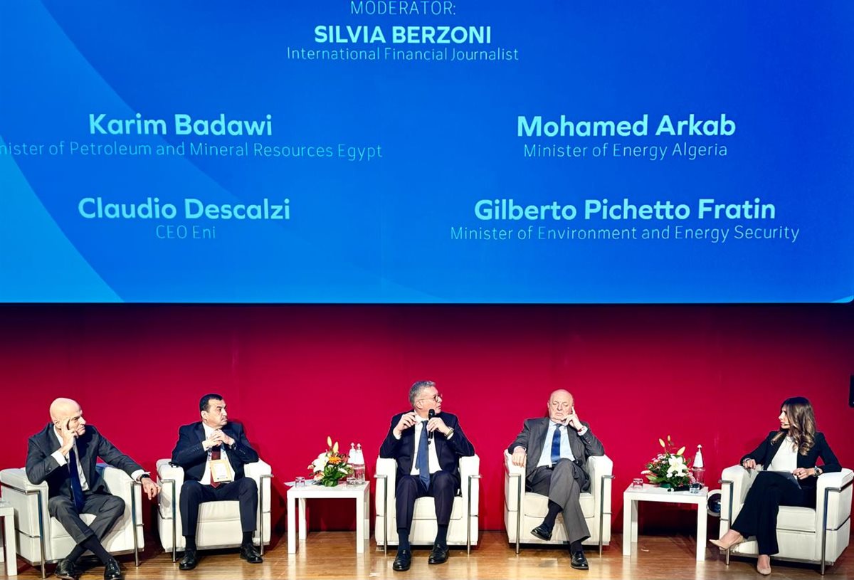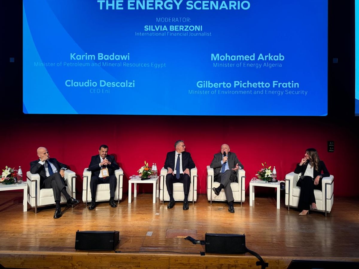 شارك المهندس كريم بدوي وزير البترول والثروة المعدنية، كمتحدث رئيسي في الجلسة الافتتاحية تحت عنوان "سيناريو الطاقة: وجهة نظر المؤسسات والشركات" بمشاركة كلاوديو ديسكالزي الرئيس التنفيذي لشركة إيني الإيطالية، ومحمد عرقاب وزير الطاقة والمعادن الجزائري، وخليفة رجب عبد الصادق، وزير النفط والغاز الليبي، وأدار الجلسة سيلفيا بيرزوني الصحفية المالية الدولية.