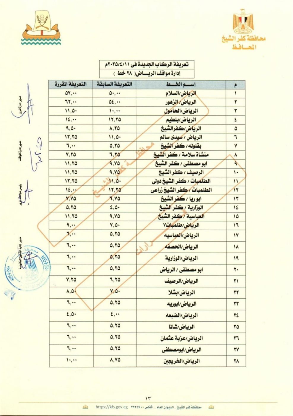 محافظ كفر الشيخ يعتمد التعريفة الجديدة لـ«نقل الركاب»