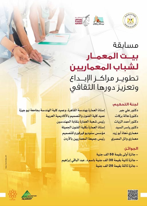 أعلن صندوق التنمية الثقافية التابع لوزارة الثقافة، الاثنين، عن مسابقة جديدة لشباب المعماريين بمناسبة ذكرى افتتاح بيت المعمار المصري، وذلك ضمن اهتمامها باكتشاف المواهب في المجالات المختلفة، ودعما للمتميزين من الشباب.