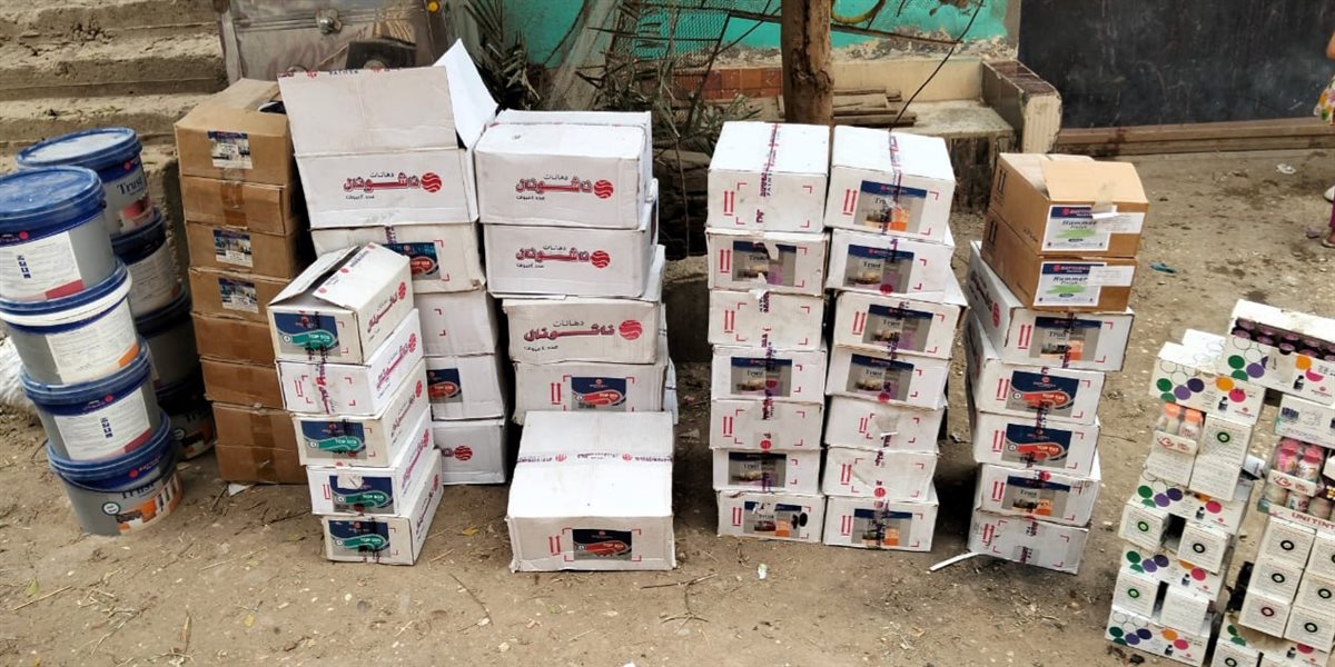 ضبط 2200 عبوة دهانات وبويات منتهية الصلاحية بالفيوم