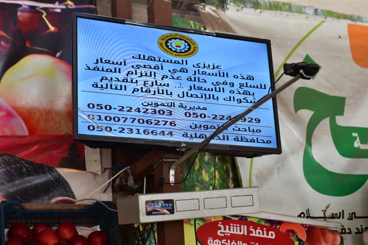 وأكد محافظ الدقهلية، على المتابعة اليومية للأسعار المعلنة عبر الشاشات، وأهاب بالمواطنين الشراء وفقًا لها، والابلاغ عن أي منفذ لا يلتزم بها أو يغالي في الأسعار أو لا تعمل الشاشات الإلكترونية في منفذه، وكلف وكيل وزارة التموين بالتنسيق مع لجان المتابعة المكلفة من الديوان العام للمحافظة، بالمتابعة على مدار الساعة للأسعار المعلنة على الشاشات الإلكترونية ومقارنتها بأسعار البيع الفعلي للسلع بمنافذ البيع، واتخاذ الإجراءات القانونية لغلق أي منفذ في حالة البيع بأسعار غير المعلنة خلال الشاشات.