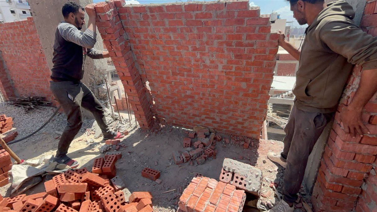 وتمكنت الحملة من إيقاف الأعمال وإزالة أعمدة وجدران الدور السادس العلوى لعقار مخالف بمنطقة على الجمل ، لمخالفة قانون البناء رقم ١١٩ لسنة ٢٠٠٨ ولائحة التنفيذية .