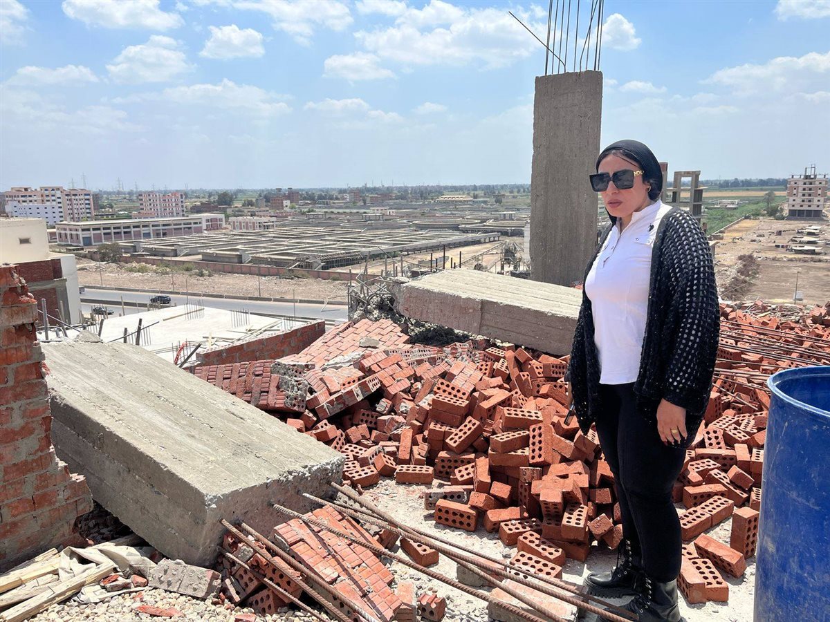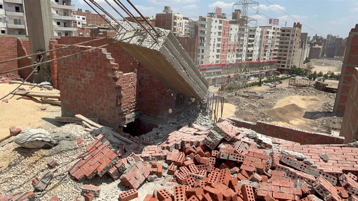 إزالة أعمدة وجدران الدور السادس العلوى لعقار مخالف بالمنصورة