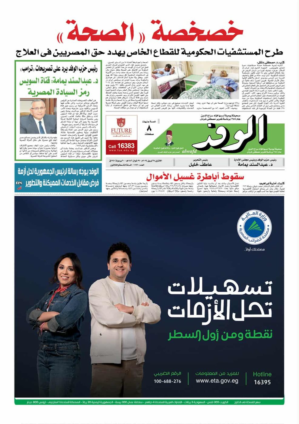 تنشر جريدة الوفد في عددها الصادر، غدا الإثنين، الكثير من الموضوعات والتقارير الإخبارية المهمة، أبرزها: "خصخصة الصحة".