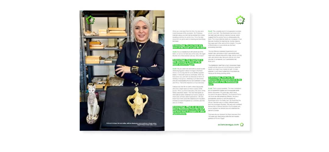 وقد أجرت المجلة حوارًا خاصًا مع الدكتورة شروق الأشقر، المؤلفة الرئيسة للبحث، وعضو فريق "سلام لاب" البحثي، برئاسة الدكتور هشام سلام، مؤسس مركز جامعة المنصورة للحفريات الفقارية بكلية العلوم، تناولت فيه تفاصيل اكتشافها البحثي الجديد، الذي حظي باهتمام كبير من قِبَل المؤسسات التعليمية في المملكة المتحدة؛ حيث جرى توزيع العدد على أكثر من 500 معلم في 350 مدرسة بريطانية، مما يفتح المجال لوصول المحتوى إلى أكثر من 175 ألف طالب علوم، بالإضافة إلى عدد من الجامعات والمعاهد العالمية.