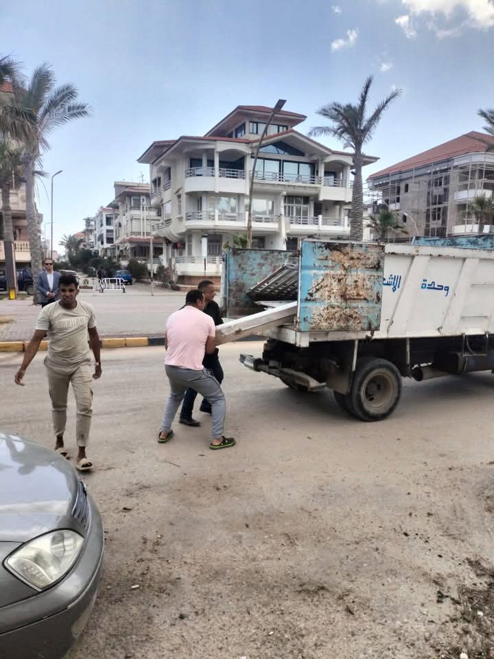 وبشأن شكوي المواطنين عن وجود مواد وأتربة متراكمة على طريق رأس البر الغربي والكوبرى العلوى، والتى نتجت عن وجود أحد مخازن مواد التحجير بالمنطقة، قامت حملة مكبرة بالموقع محل الشكوى لتنظيف جانبى الطريق باستخدام معدات صاحب المخزن ومعدات التنظيف الميكانيكية، وذلك بالتنسيق مع الوحدة المحلية لمركز ومدينة دمياط وإدارتي المتابعة والبيئة، كما تم إتخاذ الإجراءات اللازمة تجاه ذلك والمتابعة المستمرة لتنفيذ تلك الأعمال يوميًا حتى تمام الانتهاء من إزالة المخلفات .