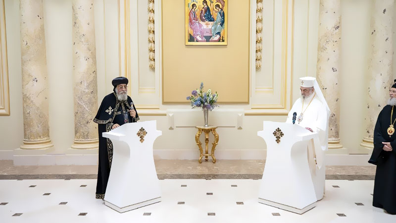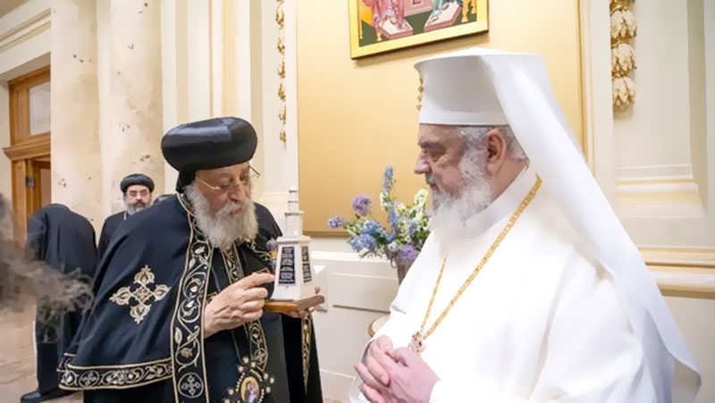 وتبادل البطاركة الهدايا التذكارية، فبينما قدم بطريرك رومانيا أيقونة للقديس ديمتريوس الجديد، شفيع مدينة بوخارست، بالإضافة إلى أيقونة صدر القديس أندراوس الرسول، شفيع رومانيا، أهدى البابا نظيره مجسماً للمنارة الشهيرة فى الإسكندرية مكتوب عليها قانون الإيمان بعدة لغات، وأيقونتين تمثلان رحلة العائلة المقدسة لأرض مصر.