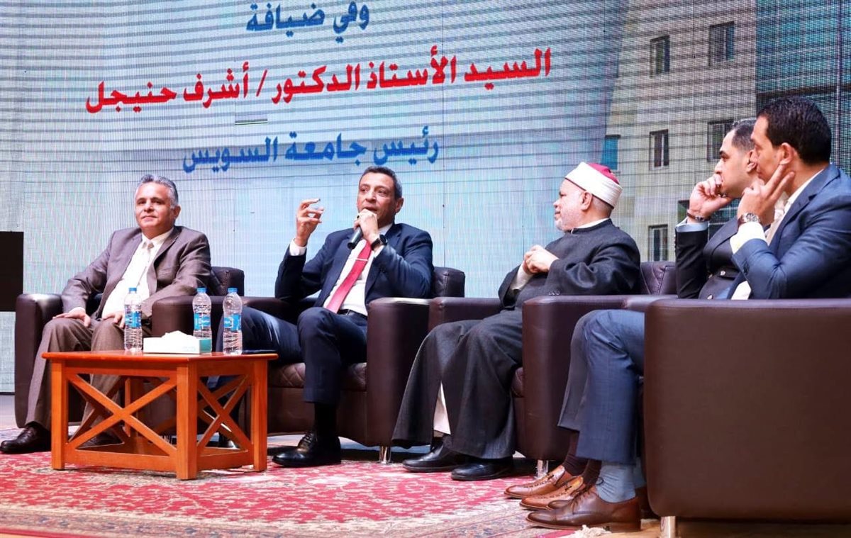 من جانبه، عبّر رئيس جامعة السويس الدكتور أشرف حنيجل، عن اعتزازه بتنظيم هذه الندوة، قائلًا: “أثمّن الدور المحوري الذي تلعبه محافظة السويس بقيادة اللواء طارق الشاذلي في نشر الوعي المجتمعي من خلال مثل هذه الفعاليات الهادفة، التي تستهدف تنمية الفكر النقدي، وتعزيز الهوية الوطنية، وترسيخ القيم المجتمعية في نفوس شبابنا” .