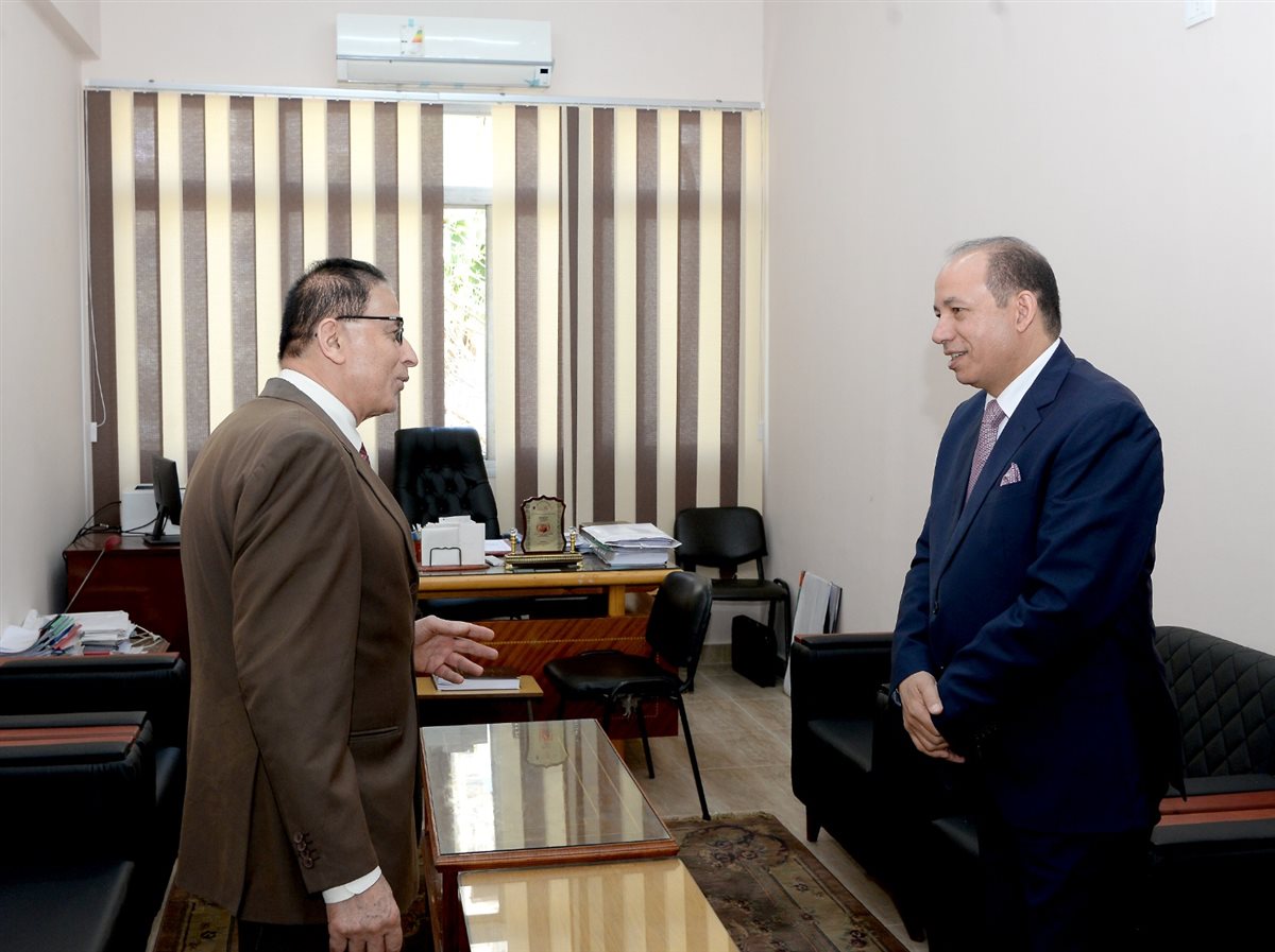 واستقبل الدكتور شريف خاطر، رئيس جامعة المنصورة، فضيلة الدكتور محمود الهواري، الأمين العام المساعد للدعوة والإعلام الديني بمجمع البحوث الإسلامية، خلال زيارته للجامعة للمشاركة في ندوة تثقيفية بكلية التجارة، تحت عنوان: "القمار الإلكتروني وخطره على الفرد والمجتمع".