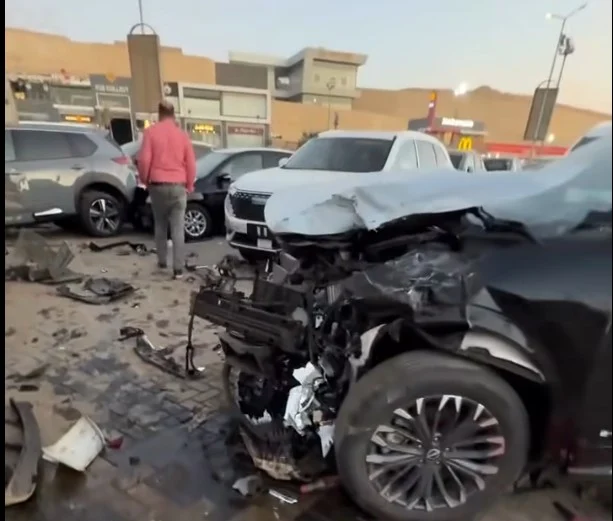 خسائر بالملايين .. إصابة شخصان وتحطم 11 سيارة إثر اصطدام تريلا بمعرض في القطامية