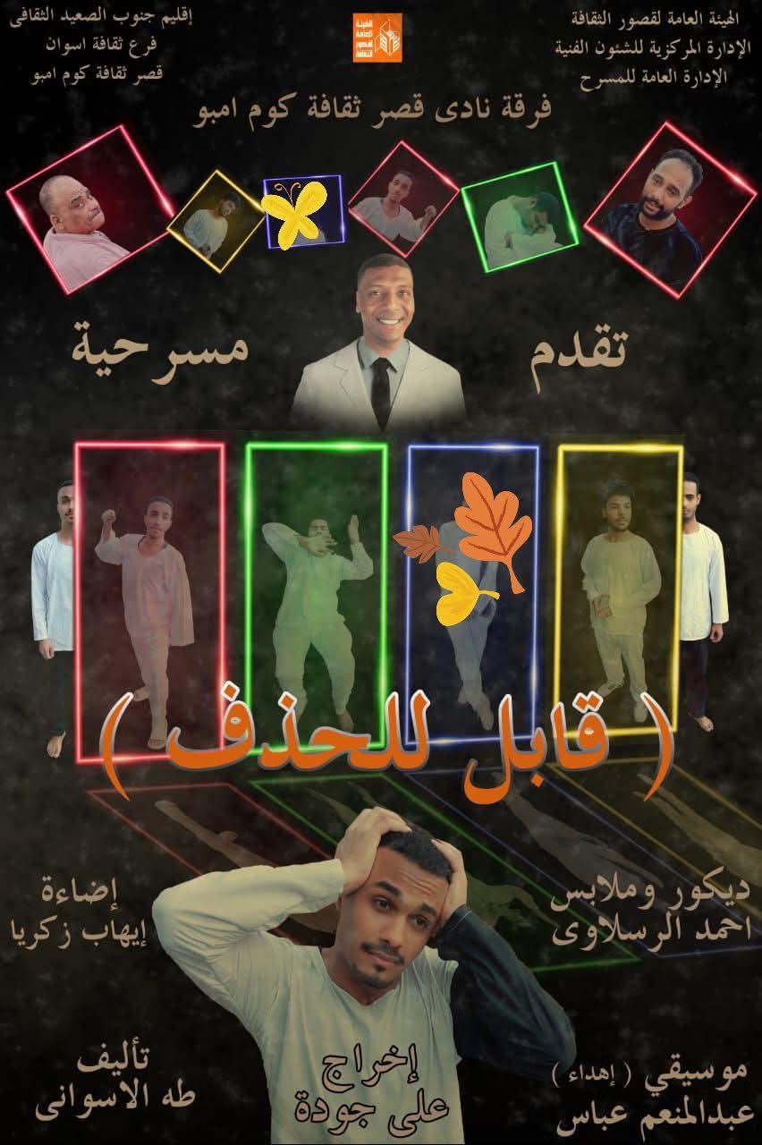 "قابل للحذف" تمثيل خالد عبد العظيم، محمد فراج نورى، حسن بدرى عبد الوهاب، حبيبة زكريا سعد، إيمان نوبى محمد، حسام الدين حسن محمد، هشام عمر أبو الوفا، أحمد أبو الحسن محمد، عبد المالك عبد الله محمد، محمد ربيع عبد الرحيم.
