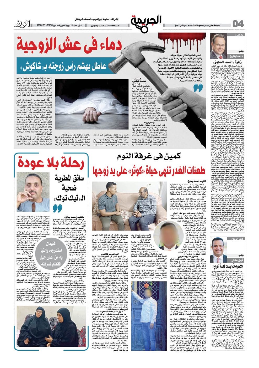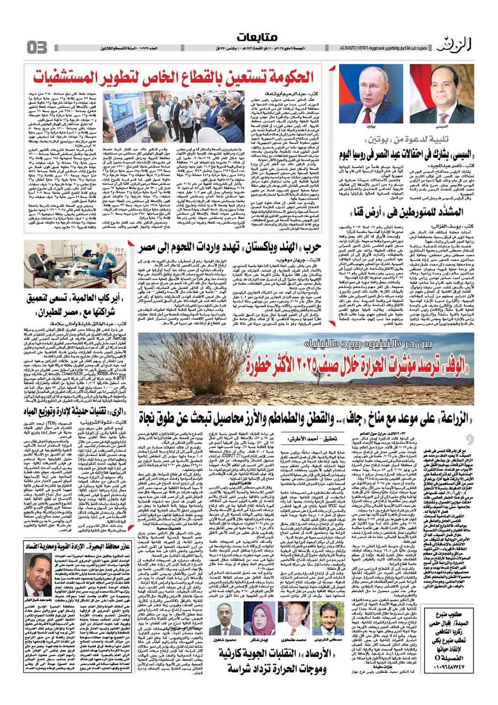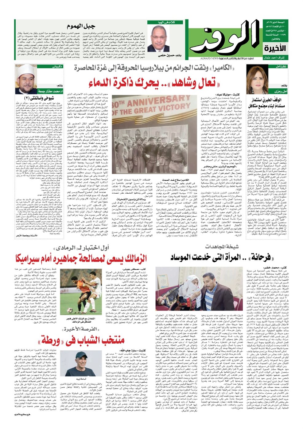 ويتضمن عدد الجريدة الكثير من الموضوعات الأخرى، أهمها: