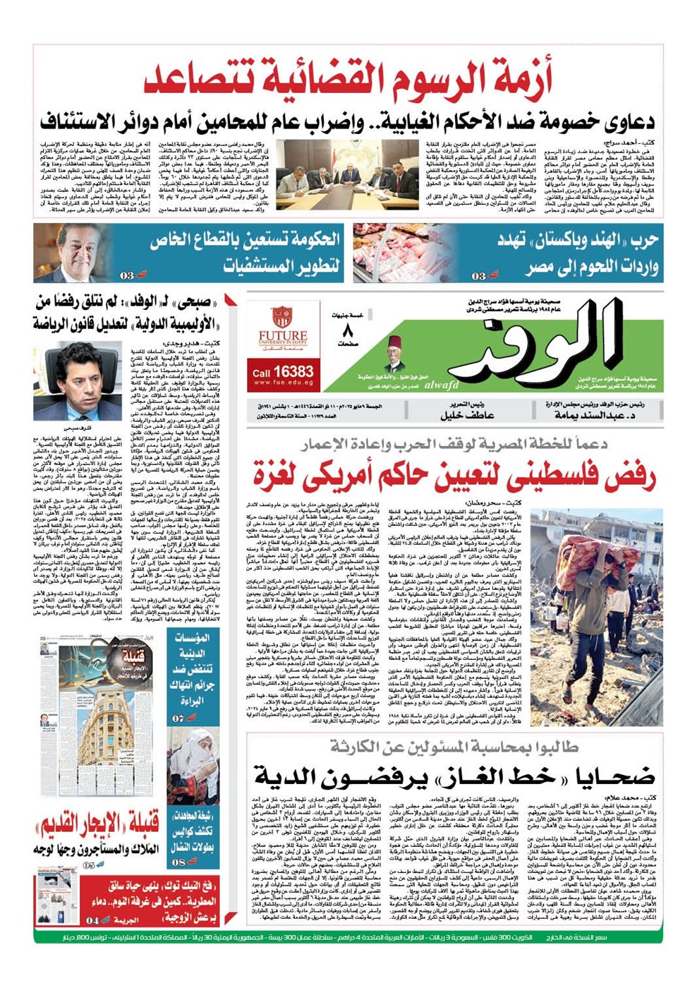 اقرأ بالوفد غدا|أزمة الرسوم القضائية تتصاعد.. رفض فلسطيني تعيين حاكم أمريكي لغزة