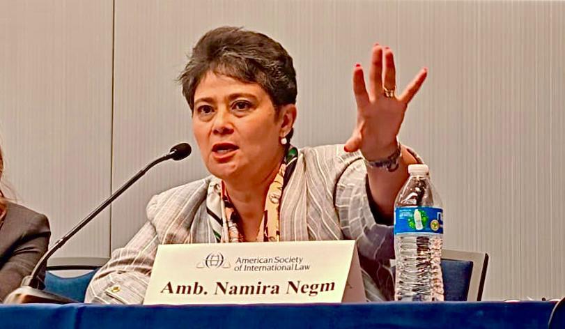 وشرحت نجم إلى أنه عندما كانت تتفاوض بإسم مصر على وثائق لاتفاقيات الأمم المتحدة، كان لديهم كمفاوضين مصطلح يُعرف بـ "الغموض البنّاء" (Constructive Ambiguity)، ما هو الغموض البنّاء؟ فنحن نغادر جميعاً الغرفة ونحن غير سعداء بالنص الذي توصلنا إليه في معاهدة، لكن كمحامين وممثلي دول مختلفة يمكننا التعايش معه. لماذا؟ لأن كل واحد منا وضع ما يكفي من الثغرات بحيث يمكننا، عندما نعود إلى حكوماتنا، أن نفسر النص بطريقة تخدم النقطة التي بدأنا بها التفاوض، هذه هي الحقيقة، وهي تتعلق بالانتقال من الأحادية إلى التعددية، ثم العودة مرة أخرى إلى الأحادية.
