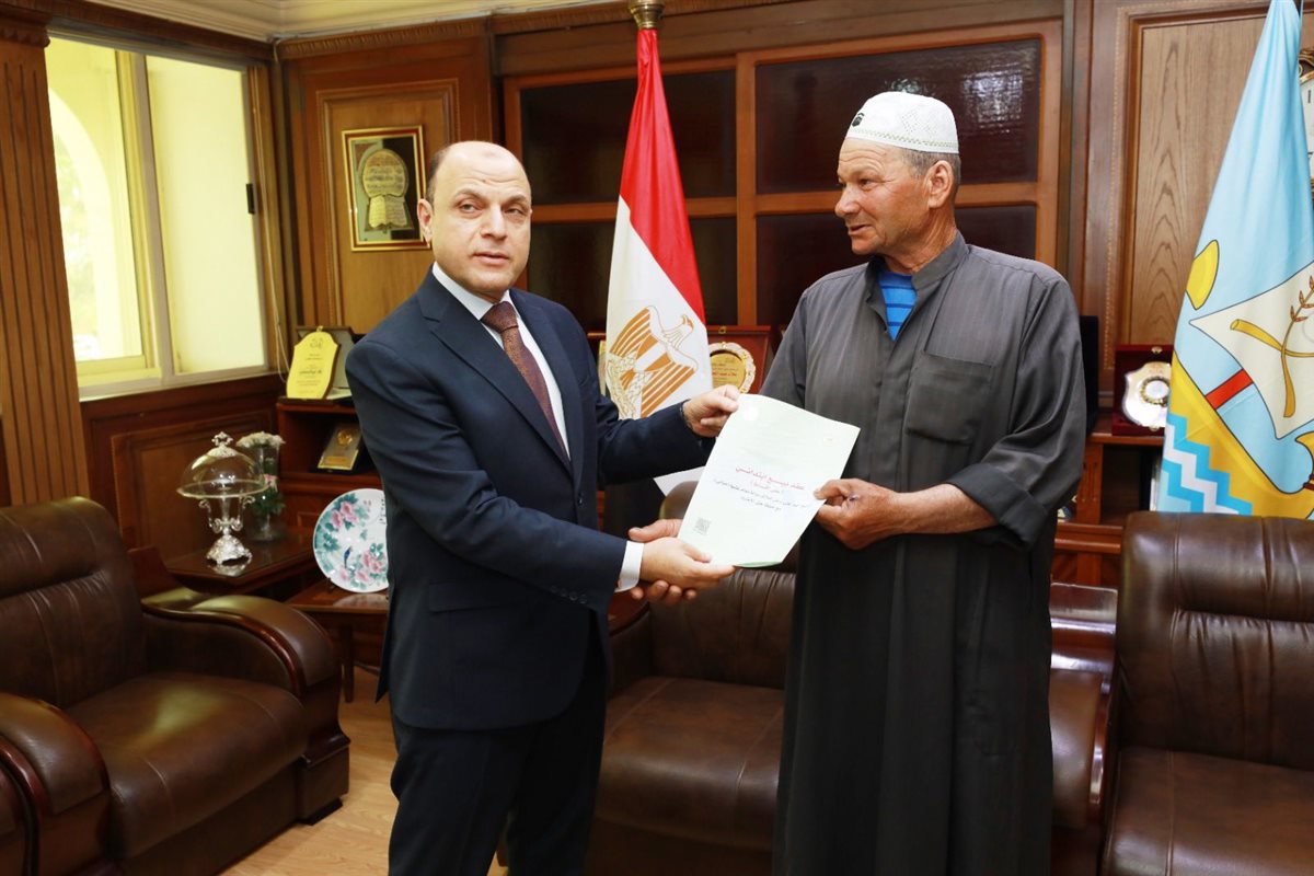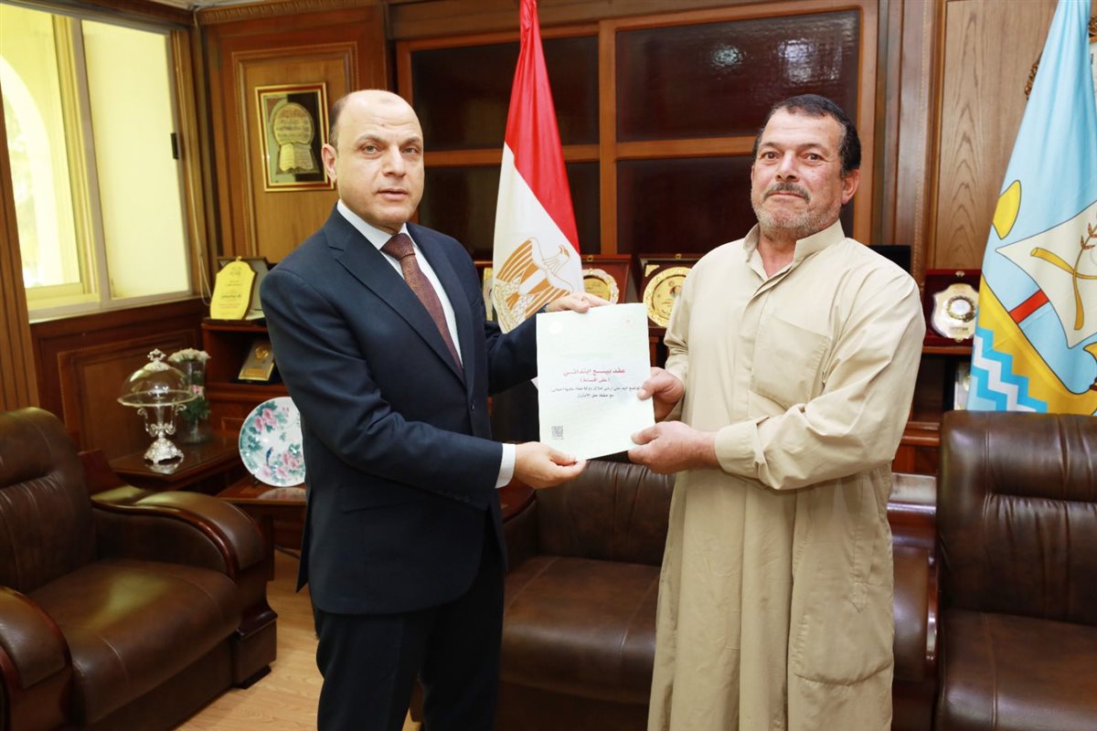 سلم محافظ كفرالشيخ اللواء دكتور علاء عبدالمعطي، اليوم الأحد، 14 عقد تقنين أراضي أملاك دولة للمستفيدين من المواطنين واضعي اليد على أملاك الدولة، مع استكمال كافة الإجراءات الخاصة بالتقنين وموافقة الجهات المعنية طبقًا للقانون.