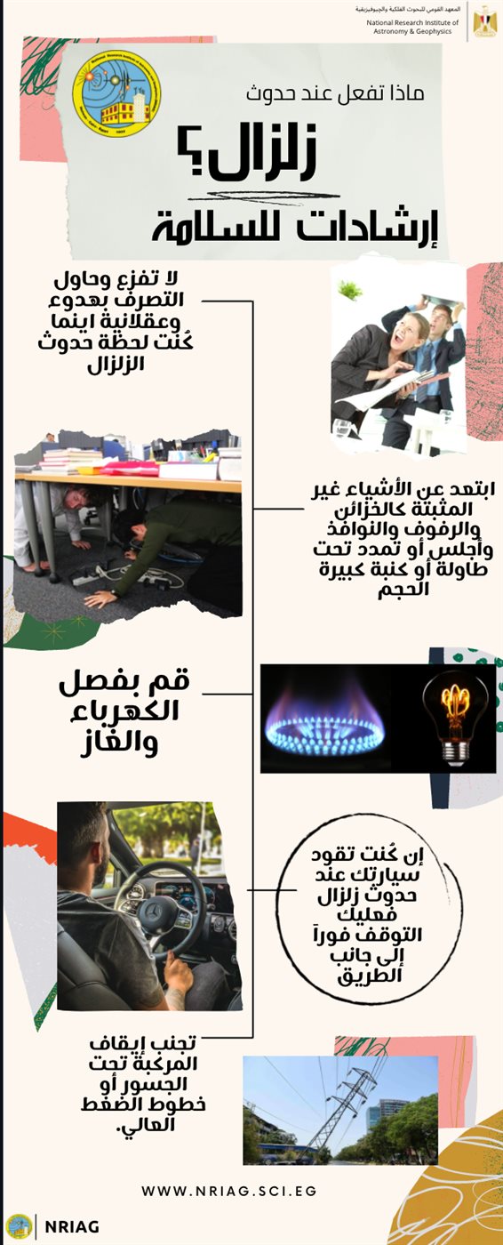 وكشف المعهد القومي للبحوث الفلكية والجيوفيزيقية، عن العديد من النصائح التي يجب أن يتبعها المواطنين لتفادي أي مخاطر عند وقوع الزلازل.