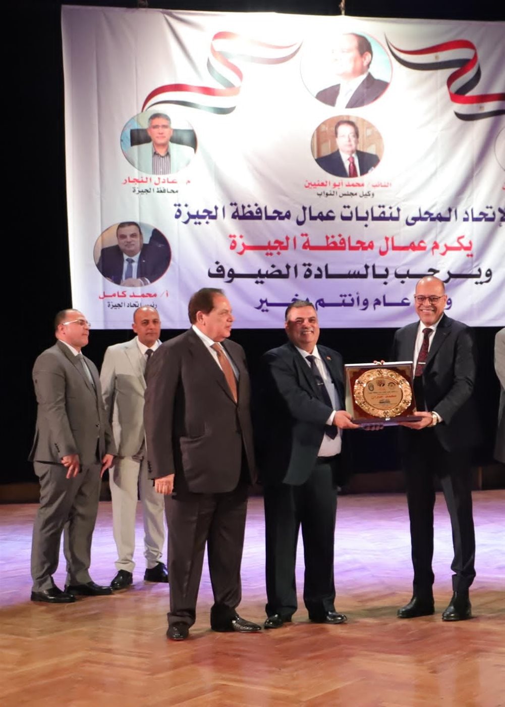 جاء ذلك خلال كلمة الوزير جبران، اليوم، في الاحتفالية السنوية لعيد العمال، التي نظمها الاتحاد المحلي لعمال الجيزة برئاسة محمد كامل، لتكريم 280 عاملًا من مختلف الشركات والهيئات التابعة للمحافظة، في إطار تقدير جهود العمال المُتميزين ودورهم في دفع عجلة التنمية داخل المحافظة.. والذي أُقيم في قاعة سيد درويش بالجيزة، بحضور عددِ من القيادات التشريعية، والتنفيذية، والعمالية، على رأسهم المهندس عادل النجار محافظ الجيزة، ووكيل مجلس النواب، رجل الأعمال محمد أبو العينين، وعبد المنعم الجمل رئيس الاتحاد العام لنقابات عمال مصر.