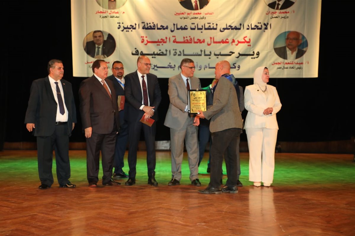 تصريحات المحافظ جاءت خلال مشاركته في الاحتفالية السنوية لعيد العمال والتي أقيمت اليوم بحضور محمد جبران وزير العمل وعدد من القيادات التنفيذية والشعبية والنقابية بالمحافظة على رأسهم وكيل مجلس النواب محمد أبو العينين وعبد المنعم الجمل رئيس الاتحاد العام لنقابات عمال مصر وبتنظيم الاتحاد المحلي لعمال الجيزة برئاسة محمد كامل وذلك لتكريم 280 عاملًا من مختلف الشركات والهيئات التابعة للمحافظة في إطار تقدير جهود العمال المتميزين ودورهم في دفع عجلة التنمية داخل المحافظة .