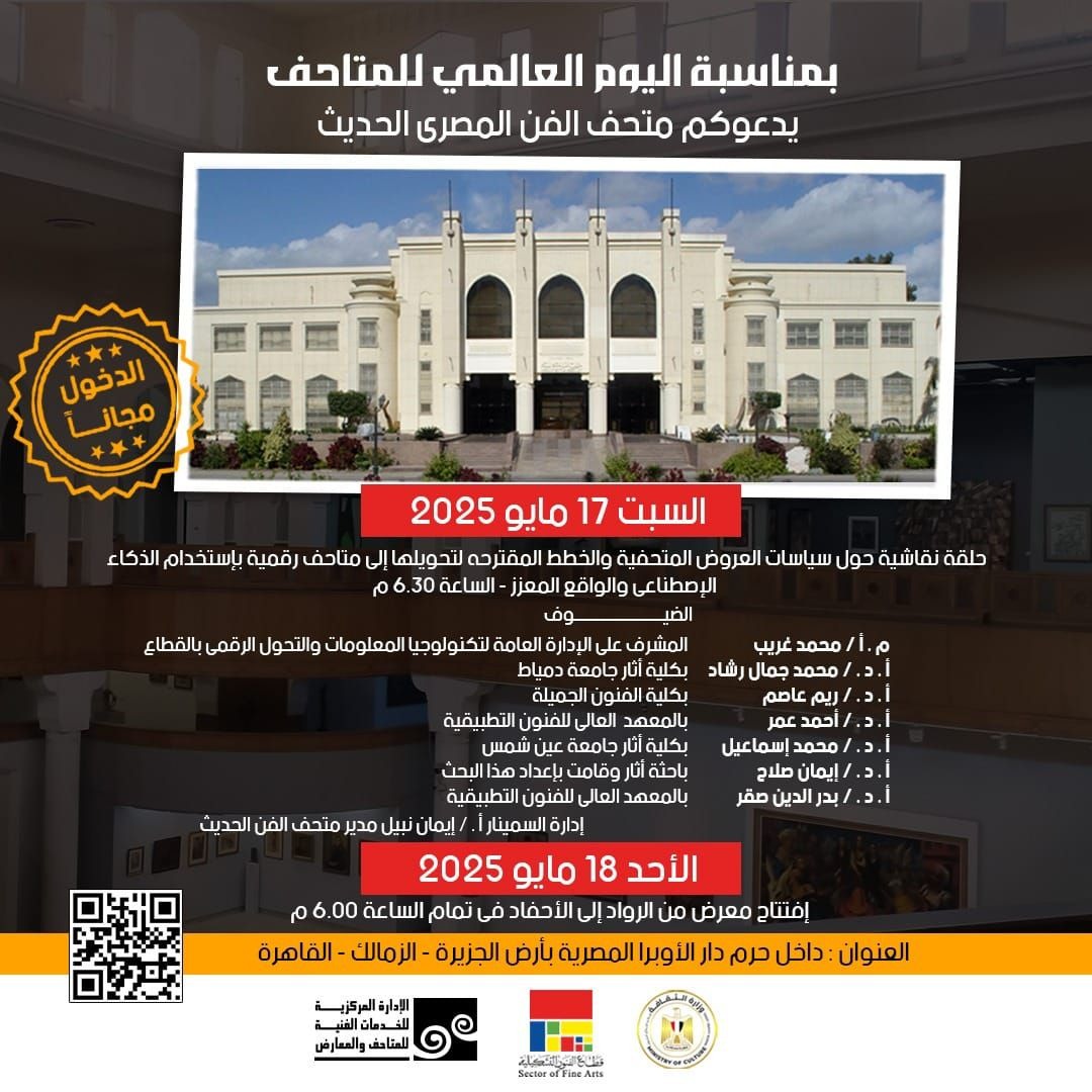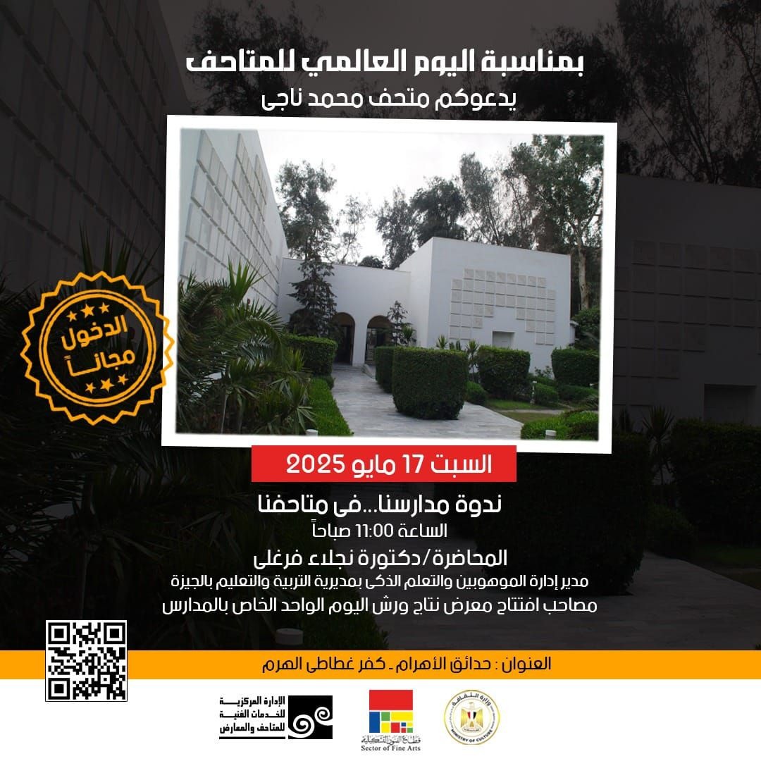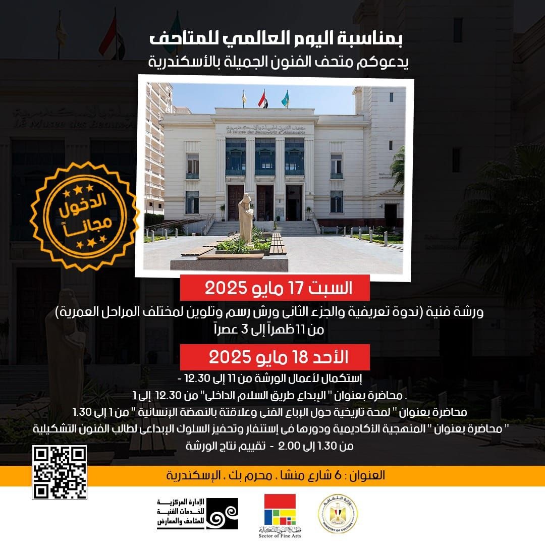 وقد أعدت الوزارة، ممثلة في قطاع الفنون التشكيلية برئاسة الدكتور وليد قانوش، برنامجًا فنيًا وثقافيًا ثريًا ومتنوعًا، ينطلق اليوم السبت 17 مايو، حيث يستضيف متحف طه حسين ورشة فنية يعقبها “صالون طه حسين لذوي الهمم” تحت عنوان “تعرف معنا على طه حسين”، بينما تُقام في متحف مصطفى كامل ندوة ثقافية بعنوان “المتاحف الخضراء.. مستقبل مستدام لحفظ التراث” تناقش مفاهيم الاستدامة في العمل المتحفي. ويشهد متحف زكريا الخناني وعايدة عبد الكريم ورشة حكي موجهة للفئة العمرية من 12 إلى 18 سنة، تتناول سيرة الفنانين زكريا الخناني وعايدة عبد الكريم، أما متحف محمد ناجي فيستضيف معرض نتاج ورش اليوم الواحد، يصاحبه ندوة بعنوان “مدارسنا.. في متاحفنا”، تبدأ في تمام الساعة 11 صباحًا. وتُقام في متحف الفنون الجميلة بالإسكندرية ندوة تعريفية يعقبها ورش رسم وتلوين موجهة لجميع الأعمار، من الساعة 11 صباحًا حتى 3 عصرًا. ويُختتم اليوم في متحف الفن المصري الحديث بحلقة نقاشية تُعقد في تمام الساعة 6:30 مساءً، حول “سياسات العروض المتحفية والخطط المقترحة لتحويلها إلى متاحف رقمية باستخدام الذكاء الاصطناعي والواقع المعزز”.