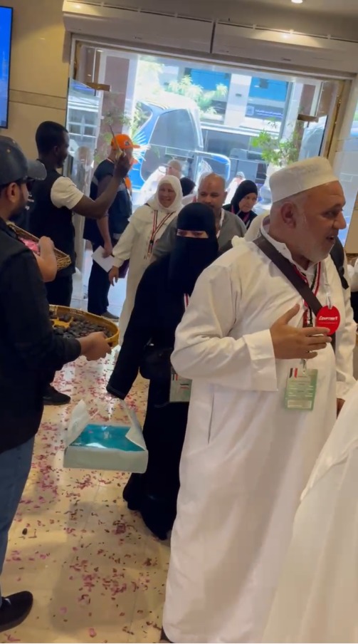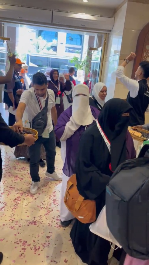 واستقبل مشرفو المؤسسة القومية لتيسير الحج الحجاج فور وصولهم إلى مطار المدينة المنورة، وتم استقلالهم الباصات المخصصة لنقلهم إلى الفنادق القريبة من ساحة الحرم النبوى، وتم تسكينهم، ثم توجهوا لأداء الصلاة في المسجد النبوي الشريف.
