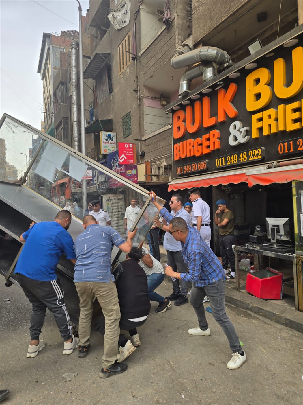 كما ضمت الحملات رفع حوالي ٣٠٠ حالة إشغال للطريق العام من محال الخضروات والفواكه بمدخل منطقة الطوابق وتعديات للباعة الجائلين والمحال العامة والمطاعم وعربات المأكولات بشارع المنشية وكعبيش فيصل وقد تم مصادرة الإشغالات وتحقيق الانضباط بالشارع .