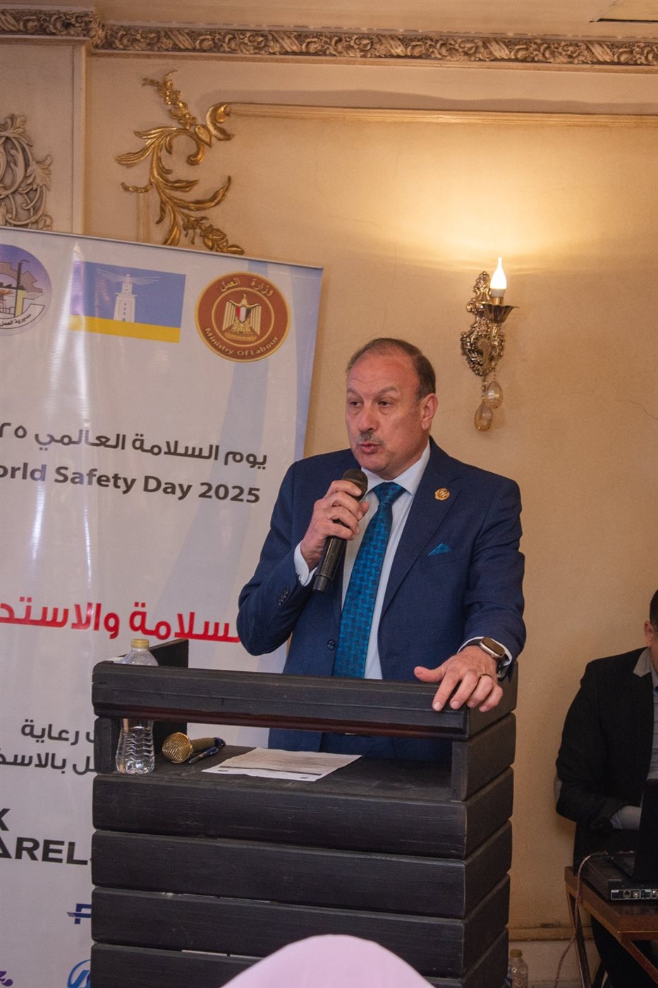 ونقل المستشار خالد عبد الله مستشار وزير العمل، والمشرف على قطاع السلامة والصحة المهنية بالوزارة، تحيات وزير العمل محمد جبران إلى المشاركين، توجيهات سيادته بمشاركة القطاع الخاص فى جميع الفاعليات، لتبادل الخبرات ورفع الوعى الوقائى، والحد من اصابات العمل والحوادث الجسيمة، وكذلك المشاركة الفعالة فى تنفيذ الملف الوطنى للسلامة والصحة المهنية.