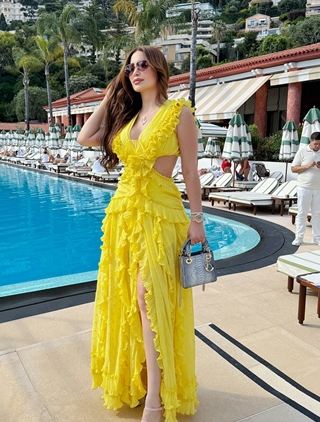 الأصفر الجرئ يبرز أنوثة نسرين طافش في رحلتها بمونت كارلو