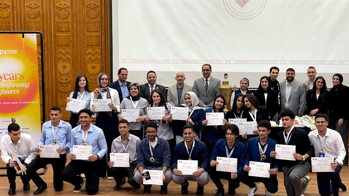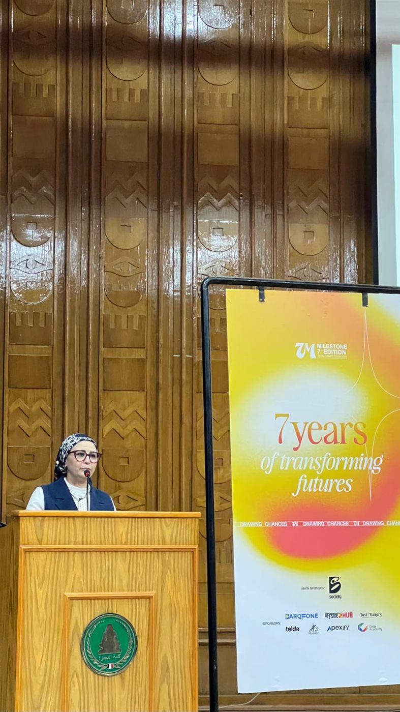 بدورها، أعربت الدكتورة عبير توكل عن فخرها بتجربة "Milestone"، التي أصبحت منصةً رائدةً لصقل مهارات الطلاب وتوجيه طاقاتهم نحو خدمة المجتمع، موضحةً أن مشروعات هذا العام جاءت على مستوى عالٍ من الإبداع والتخطيط والتنفيذ، كما وجهت الشكر للطالبة ندي جنينه الطالبة بكلية الطب مسئول الفريق وكذلك جميع أعضاء الفريق علي كل مابذلوه من مجهود وعطاء للإعداد والتنظيم للمسابقة.