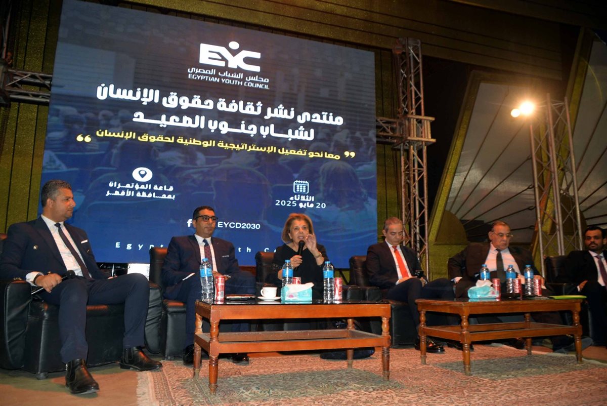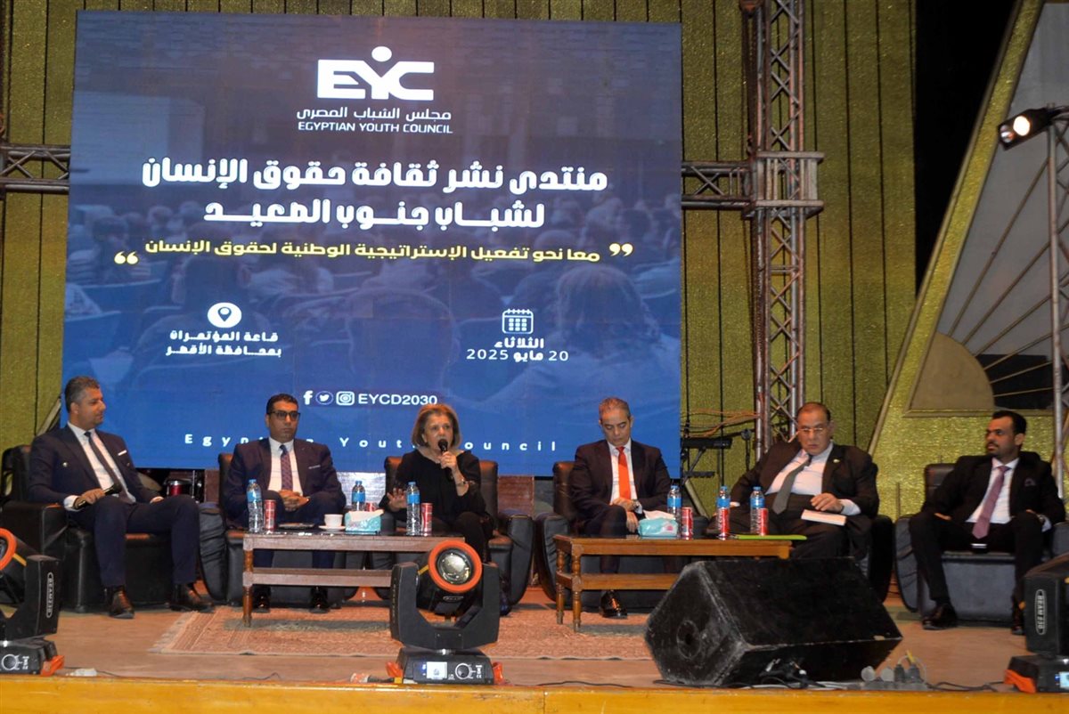 افتتحت السفيرة مشيرة خطاب، رئيسة المجلس القومي لحقوق الإنسان، فعاليات منتدى نشر ثقافة حقوق الإنسان لشباب جنوب الصعيد، والذي نظمه مجلس الشباب المصري بمحافظة الأقصر، بالتعاون مع المجلس القومي لحقوق الإنسان والاتحاد العام للجمعيات والمؤسسات الأهلية، و نقابة الإعلاميين تحت رعاية المهندس عبد المطلب عمارة محافظ الأقصر.