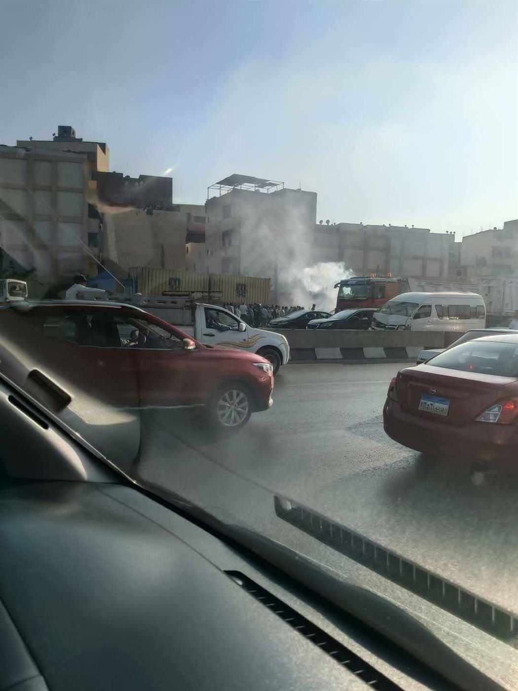 بدأت الواقعة في الساعات الأولى من صباح اليوم حيث شهد الطريق الدائري حادثا مروريا في الاتجاه القادم من المعادي إلى المنيب، صباح اليوم إثر تصادم بين 7 مركبات تنوعت بين سيارات نقل وميكروباص وملاكي، مما أدى إلى اشتعال إحدى السيارات وتفحمها بالكامل وسط حالة من الذعر بين المارة.