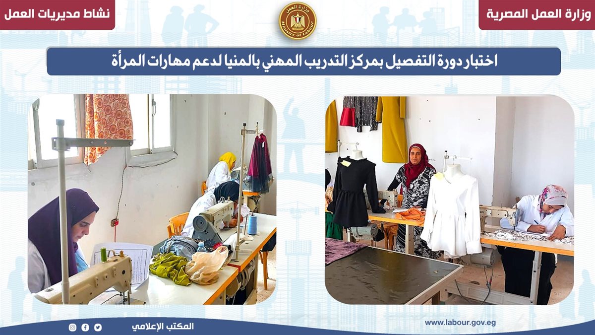 كما نظمت مديرية العمل بالمنيا، اختبار دورة التفصيل بمركز التدريب المهني بالمنطقة الصناعية، بمشاركة 14 متدربة، وذلك تحت رعاية الوزير محمد جبران وزير العمل، وبإشراف الدكتورة ماجدة صلاح مديرة المديرية.