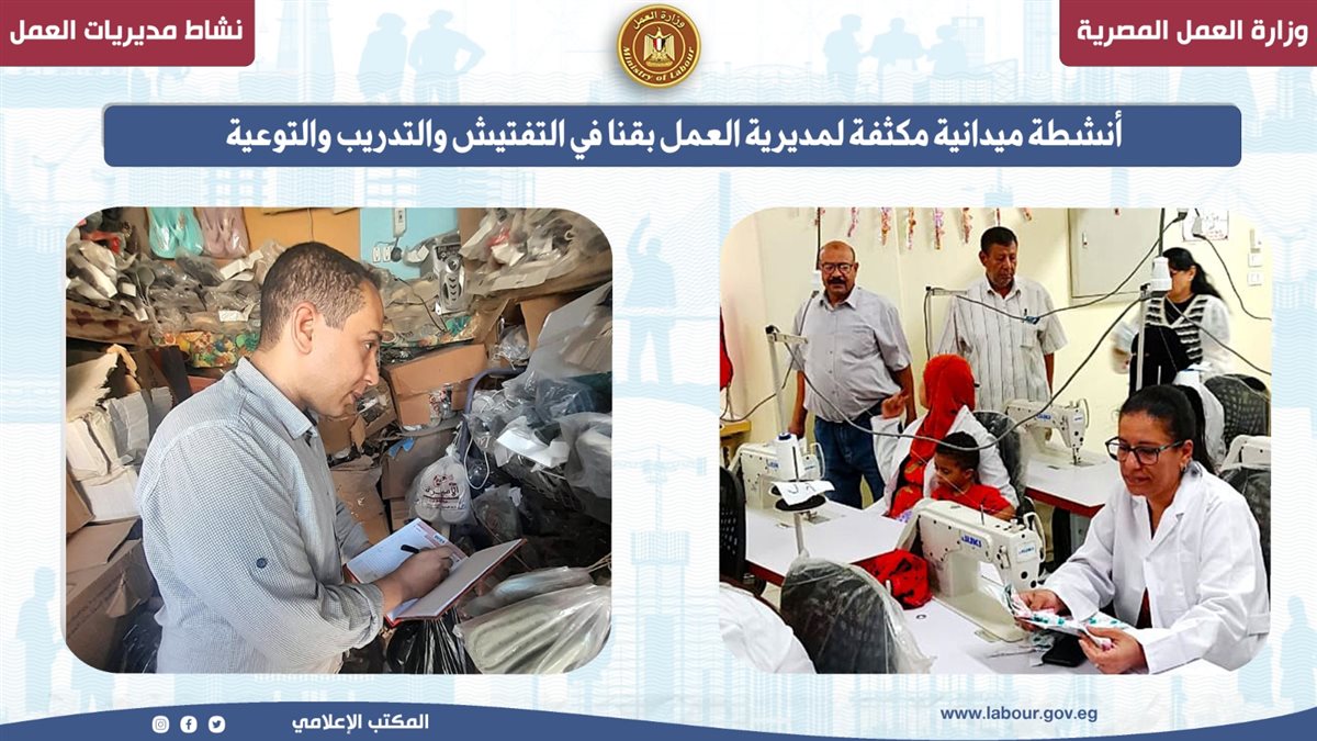 أنشطة ميدانية مكثفة لمديرية العمل بقنا في التفتيش والتدريب والتوعية