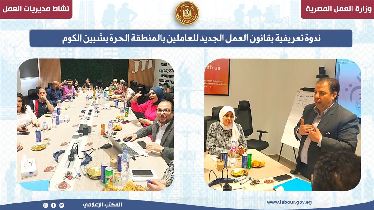 ندوة تعريفية بقانون العمل الجديد للعاملين بالمنطقة الحرة بشبين الكوم