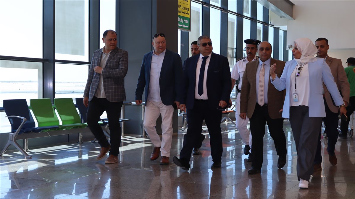كان في استقبال اللجنة الطيار / أشرف صادق مدير المطار، والملاح / محمود قرمد نائب مدير المطار , حيث تم متابعة حركة التشغيل والاطمئنان على جاهزية المطار لاستقبال الرحلات ، و تفقد أماكن إستقبال الطائرات , وإستراحات كبار الزوار ,  ومحاور الدخول والخروج من وإلى المطار ومدى إنسيابية الحركة أثناء التشغيل تزامناً مع الاستعدادات والتجهيزات اللازمة لاستقبال الوفود الرسمية ، وضيوف مصر القادمين لحضور مراسم الافتتاح الرسمي للمتحف المصري الكبير.
