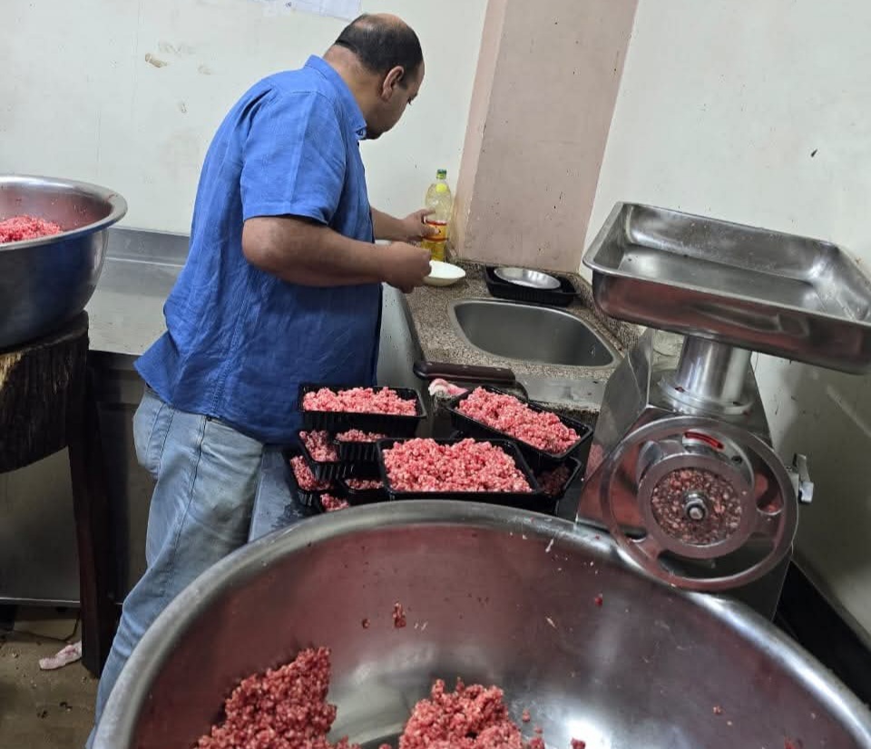 وقامت الحملة بالمرور على الأسواق والمطاعم والجزارين بنطاق الإدارة التموينية للتأكد من صلاحية اللحوم والدواجن المجمدة والحية، وتمكنت الحملة من ضبط وتحرير عدد 4 محاضر أحدهم للحوم ذبيح خارج المجازر بوزن 30 كيلو بأحد محال الجزارة بمنطقة المدابغ وعدد 3 محاضر ضبط لحوم وكبده مجمدة ومفرومة غير صالحة للاستهلاك الآدمي بأحد المحال التجارية بمنطقة السلخانة ومحلين للجزارة بمنطقة الحواتم بأجمالى وزن 79 كيلو، وتم التحفظ على اللحوم، كما تم المرور على مجزر فديمين حيث تم إعدام الطحال والغدد الليمفاوية والضرع والرحم واجيزت باقي اللحوم للختم، وفي نفس السياق تم المرور على مجزر هوارة المقطع وتم الكشف على عدد 5 أبقار تم ذبحهم و تم إعدام الطحال والغدد الليمفاوية والضرع والرحم و اجيزت باقي اللحوم للختم، وتم التحفظ على المضبوطات وتحرير العديد من المحاضر التموينية ضد المخالفين من الجزارين والمطاعم وثلاجات حفظ اللحوم ومحلات الجزارة بنطاق الإدارة التموينية.