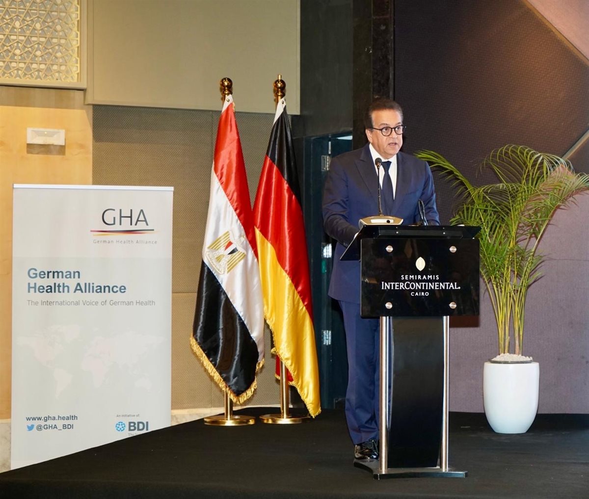 جاء ذلك خلال كلمته بالجلسة الافتتاحية لفعاليات المنتدى المصري الالماني للرعاية الصحية، والذي ينظمه التحالف الصحي الألماني "GHA" بعنوان "شراكات لتعزيز الرعاية الصحية في مصر"، وذلك بحضور الدكتور خالد عبدالغفار، نائب رئيس مجلس الوزراء وزير الصحة والسكان، د.عبلة الألفي، نائب وزير الصحة لشئون السكان وتنمية الأسرة، د.أحمد السبكي، رئيس الهيئة العامة للرعاية الصحية، د.حسام عبد الغفار، مساعد وزير الصحة للتطوير المؤسسي والمتحدث الرسمي للوزارة، إلى جانب مشاركة نخبة من صناع القرار وممثلي الشركات الرائدة والجهات الصحية من الجانبان المصري والألماني.