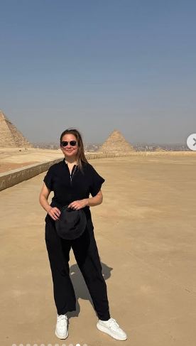 وعلقت على الصور، قائلة: " يا له من يوم استثنائي أمس، حيث اصطحبتُ لولا وڤيل أخيرًا إلى هضبة الجيزة. لم أزرها منذ فترة، وقد تحولت الآن إلى تجربة مشاهدة عالمية المستوى لأهم موقع أثري في العالم، مع مسار رائع (صديق للبيئة) للأهرامات وأبو الهول".