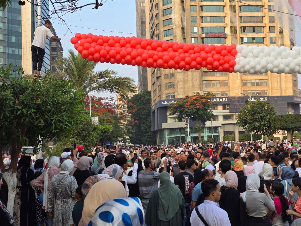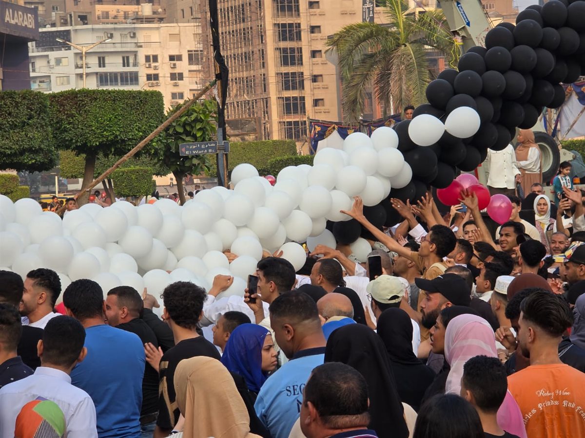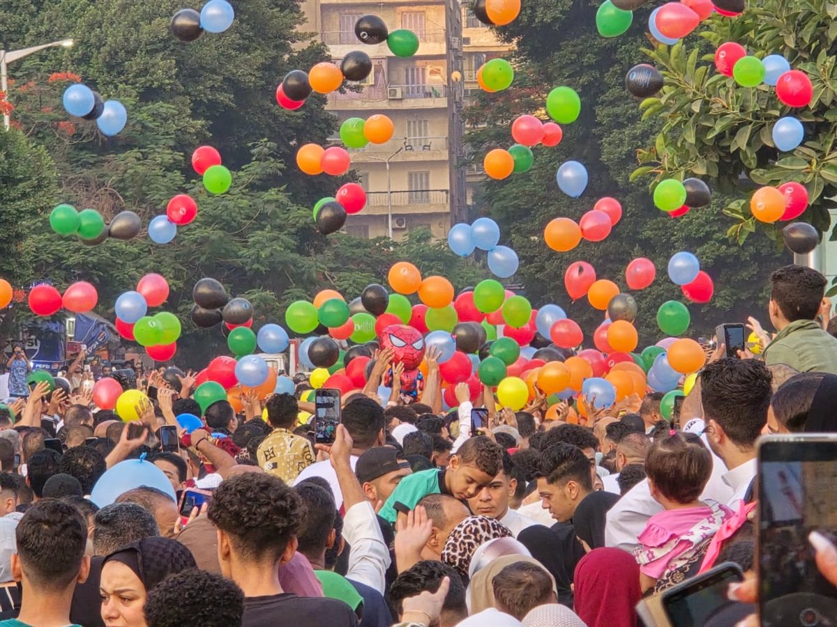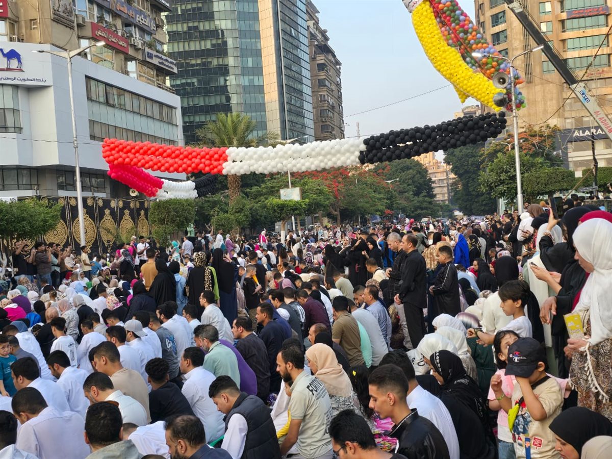 بالبلالين.. أجواء احتفالية بساحة مسجد مصطفى محمود "صور"