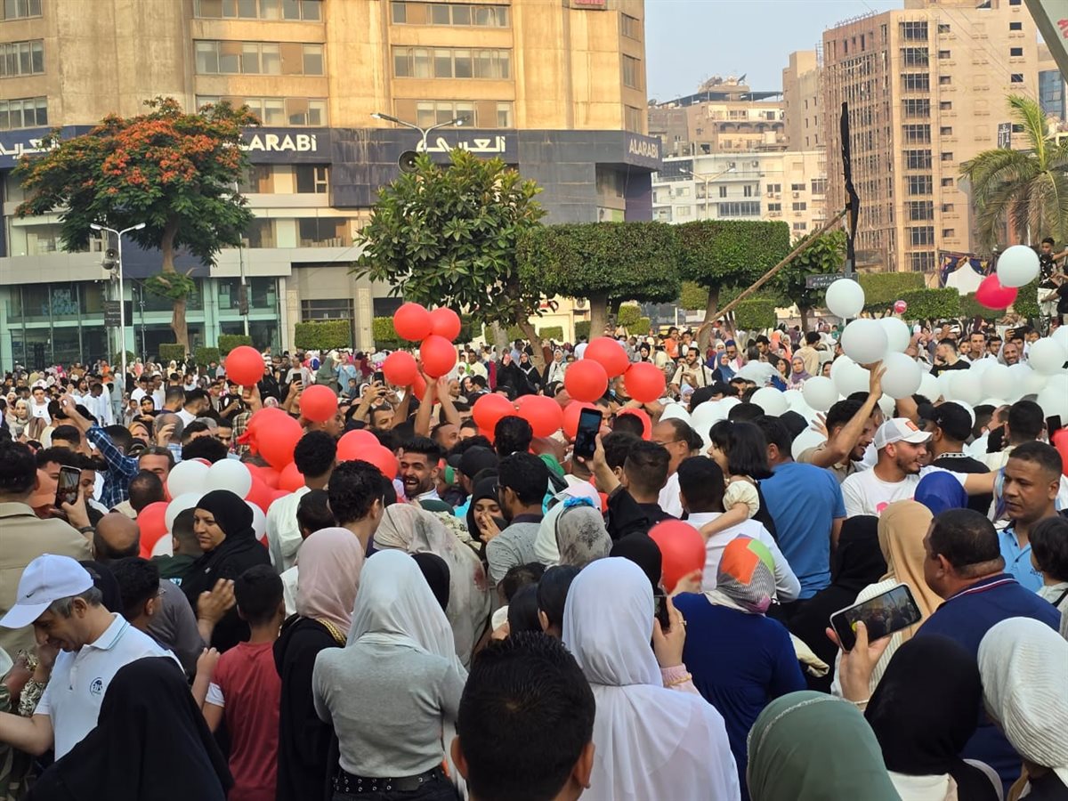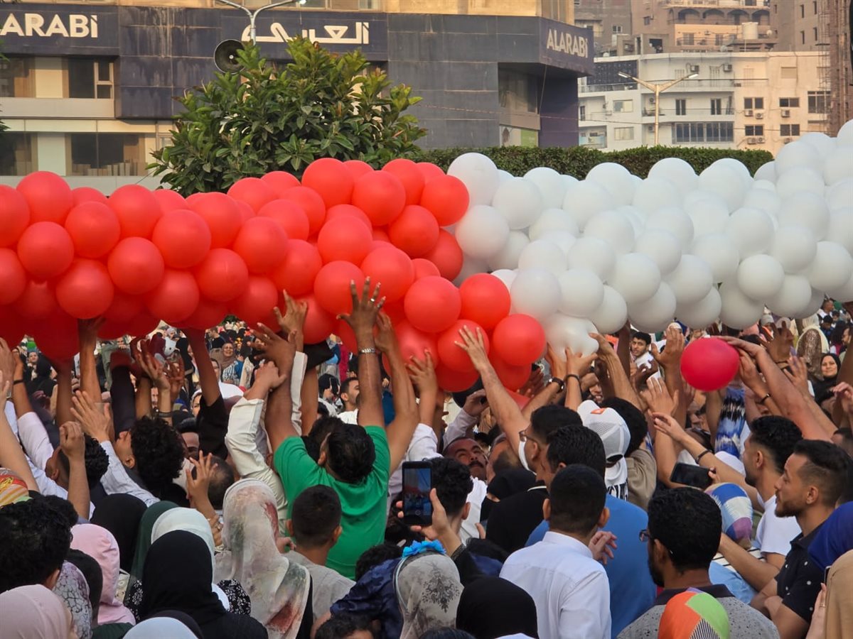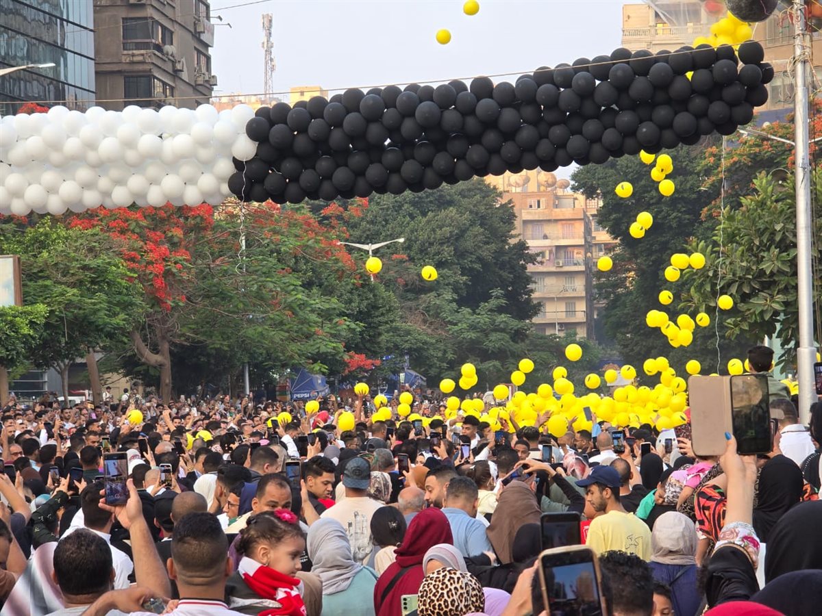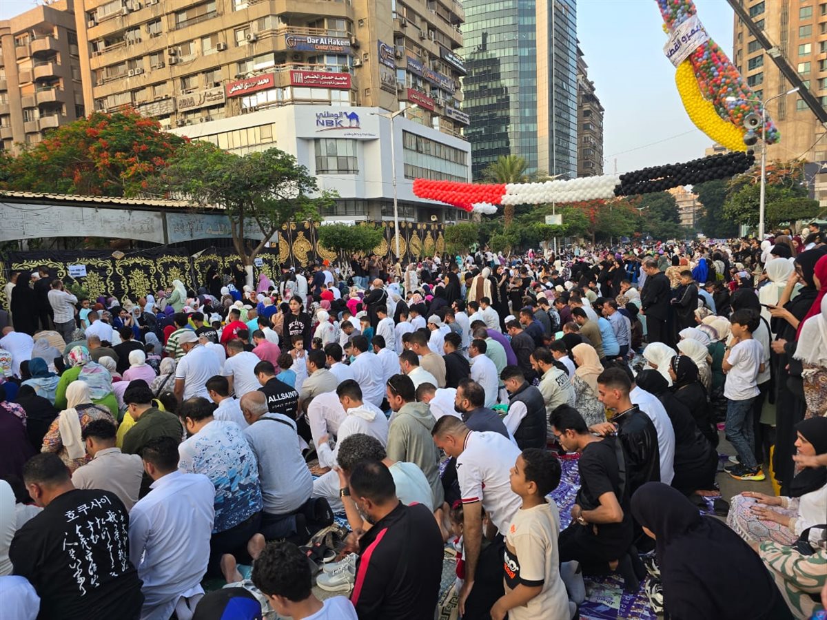 بالبلالين.. أجواء احتفالية بساحة مسجد مصطفى محمود "صور"
