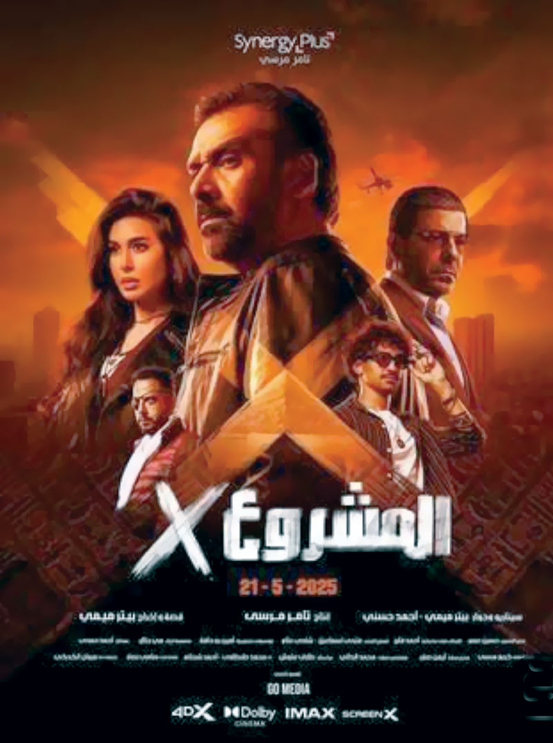 فيلم «المشروع X» يأتى من بطولة كريم عبدالعزيز، ياسمين صبرى، إياد نصار، أحمد غزى، مريم الجندى، عصام السقا، وضيفى الشرف هنا الزاهد وماجد الكدوانى، وتأليف وإخراج بيتر ميمى، وتدور أحداثه حول عالم المصريات يوسف الجمال الذى يخوض بصحبة فريقه رحلة موت مليئة بالتحديات والصعوبات، من مصر للڤاتيكان لأمريكا اللاتينية للبحر المفتوح، حتى يثبت نظرية غريبة! ألا وهى ما سر بناء الهرم الأكبر؟ هل كان مقبرة؟