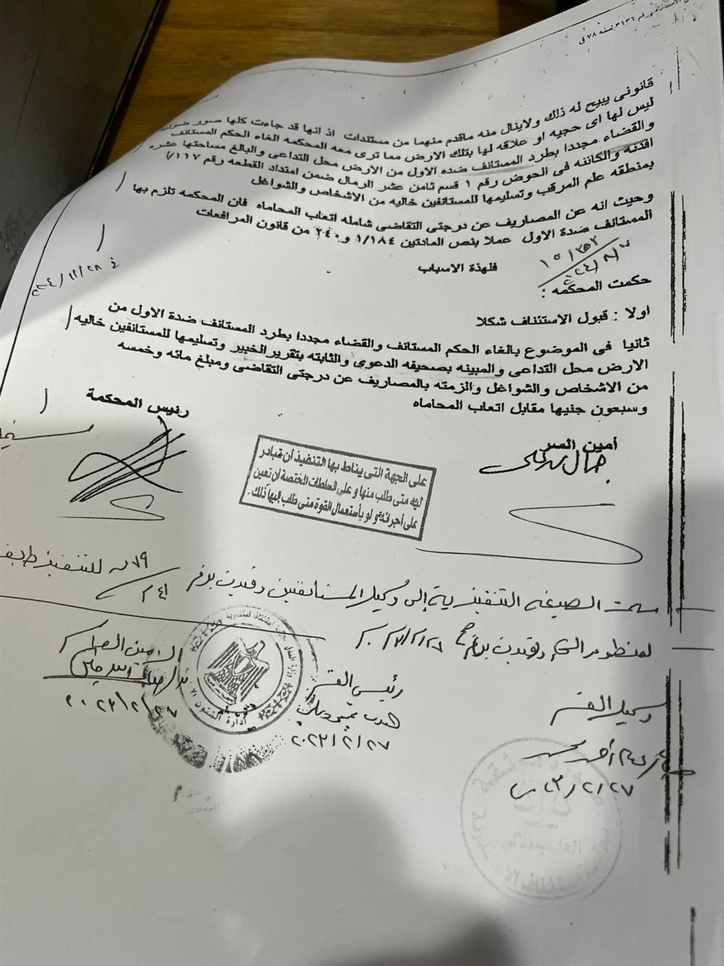 "أين حقي؟".. ورثة يطالبون بتنفيذ حكم قضائي برد أرضهم المسلوبة منذ 2011