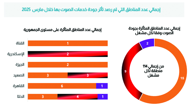 وأظهرت النتائج تفاوتًا ملحوظًا بين شركات الاتصالات الأربع، فعلى صعيد جودة خدمات الصوت، برزت فودافون كالشركة الوحيدة التى لم تُسجل ضدها أى منطقة تعانى من مشكلات جودة صوت خلال مارس، مقارنة بـ4 مناطق فى يناير، بينما شهدت اورنج ارتفاعًا فى عدد المناطق المتأثرة من 8 إلى 15، وكذلك إى آند (من 8 إلى 9)، ووى (من 1 إلى 2).