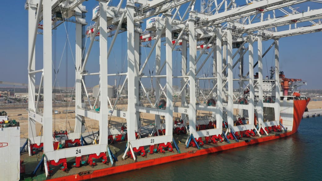 ميناء دمياط يستقبل 5 أوناش رصيف عملاقة لمحطة الحاويات "تحيا مصر 1"