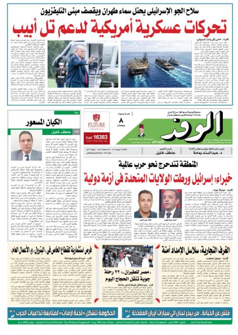 تنشر جريدة الوفد في عددها الصادر، غدًا الثلاثاء، الكثير من الموضوعات والتقارير الإخبارية المهمة، أبرزها: "تحركات عسكرية أمريكية لدعم تل أبيب".
