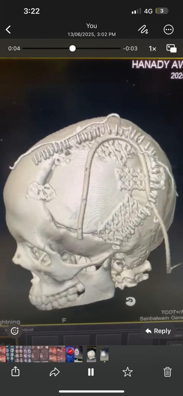 وقد أُجريت العملية بنجاح عن طريق فتح جراحي تجميلي يحافظ على نمو الشعر مستقبلاً، وتم خلالها استخدام شبكة التيتانيوم لترقيع الجمجمة، مما ساهم في استعادة الشكل الطبيعي للرأس وتحقيق استقرار للحالة العصبية.