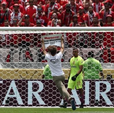يطلب دعم القطط والكلاب .. مشجع يقتحم ملعب مباراة الوداد والسيتي بلافتة مثيرة للجدل