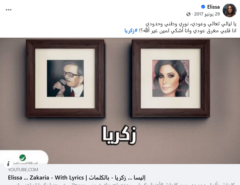جدير بالذكر أن ملكة الإحساس كانت قد طرحت عبر قناتها الرسمية على "يوتيوب" أغنيتها "زكريا"، قبل سنوات موجّهةً تحية حبّ وتقدير الى والدها الراحل "زكريا"، بمناسبة عيد الأب، وكانت من كلمات وألحان محمد رحيم.